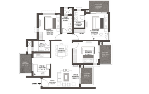 Godrej Summit features a range of spacious 2, 3, and 4 BHK apartments and penthouses, designed to cater to the needs of modern families and professionals. The apartments come with modern amenities such as smart home automation, modular kitchens, and air conditioning in all rooms.